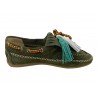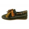 MOCASSIN CROUTE DE CUIR KAKI AVEC POMPONS AMOVIBLES. HYPER SOUPLE / REGARD