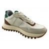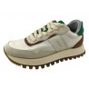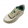 BASKET TYPE RUNNING CUIR ET TOILE IVOIRE AVEC INSERT VERT A L'ARRIERE. GANT