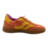 BASKET TOILE ET CUIR ORANGE SUR SEMELLE MIEL AVEC LACET ELASTIQUE. MELROSE PLACE