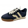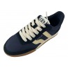 BASKET TENDANCE CUIR ET NYLON BLEU MARINE. SEMELLE MIEL ET CONFORT. STYLE ANNEE 90 / BAYLLE-GANT