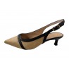 ESCARPIN CUIR ET TOILE OUVERT SUR LE TALON. TRES ELEGANT. HAUTEUR 4/5 CM ENV / UNISA