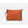 Sac bandoulière en cuir de mouton lavé et tanné végétal. Clous sur les bords du sac. Fermeture zippée, bandoulière réglable et amovible, poches intérieures et extérieures et doublure en coton.