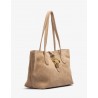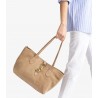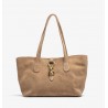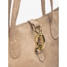 Grand sac style cabas en daim. Bandoulière et fermeture à bouton-pression métallique. Poche intérieure zippée. Dimensions : 22 cm x 40 cm x 15 cm