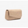 Petit sac à main fabriqué en daim. Rabat asymétrique avec fermeture aimantée. Poche intérieure zippée et bandoulière détachable assortie en daim. Dimensions : 13 cm x 25 cm x 6 cm