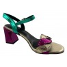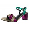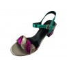 JOLIE SANDALE CUIR OR/ROSE ET VERT METALLISE. PETIT TALON 4CM. CHIC ET PRATIQUE / METAMORFOSE