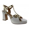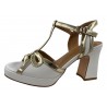 SANDALE SALOME A TALON CHIC ET ELEGANTE CUIR BLANC ET OR / ZAFU - METAMORFOSE