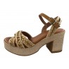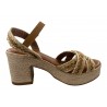SANDALE A TALON RECOUVERT DE CORDE. RAPHIA DOUBLE CUIR. COCO ABRICOT