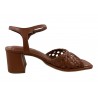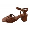 SANDALE CUIR TRESSE CAMEL SUR TALON 5 CM TRES STABLE. ELEGANTE ET CONFORTABLE / UNISA