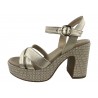 SANDALE CUIR OR SUR SEMELLE FORME SABOT / TALON TISSU BEIGE ET OR / NERO GIARDINI