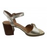 SANDALE CUIR OR ORNEE D'UNE BOUCLE PERMETTANT D'AJUSTER LA BRIDE/ TALON STABLE 4 A 5 CM/E. KARSTON