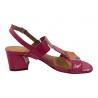 SANDALE CUIR VERNI ROSE ET ORANGE TRES FEMININE SUR TALON 4CM ENV TRES STABLE. WE DO