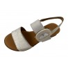 SANDALE SUR PETIT COMPENSE LIEGE CUIR IRISE GRIS/BLANC. FERMETURE PAR SCRATCH. CONFORT +++ / GABOR