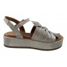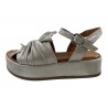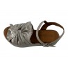 SANDALE PLATE CUIR IRISE METAL SUR PLATEAU. DRAPPE SUR LE DESSUS IDEAL POUR CACHER LES ORTEILS. COCO ABRICOT