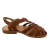 SANDALE MULTIBRIDES CUIR CAMEL. BOUT FERME.  MEDUSE